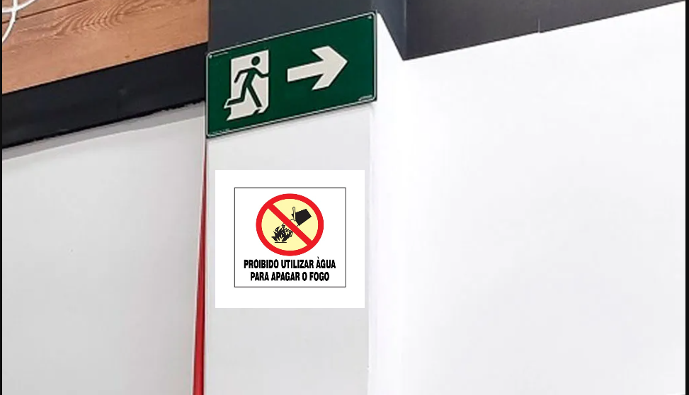 Placa de sinalização P3 proibido utilizar água para apagar fogo